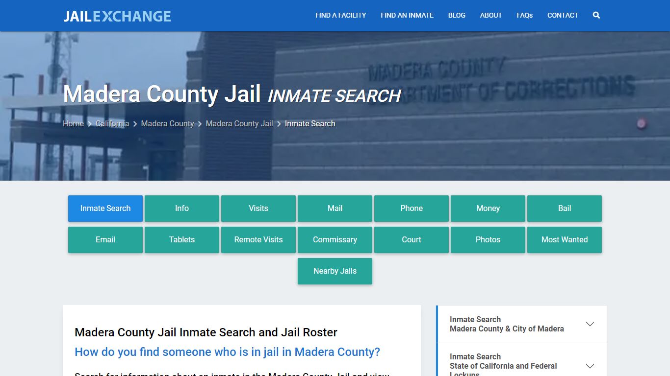https://www.jailexchange.com/city-and-county-jails/california/madera-county/madera-county-jail/inmate-search-and-mugshots Inmate Search: Roster & Mugshots - Madera County Jail, CA